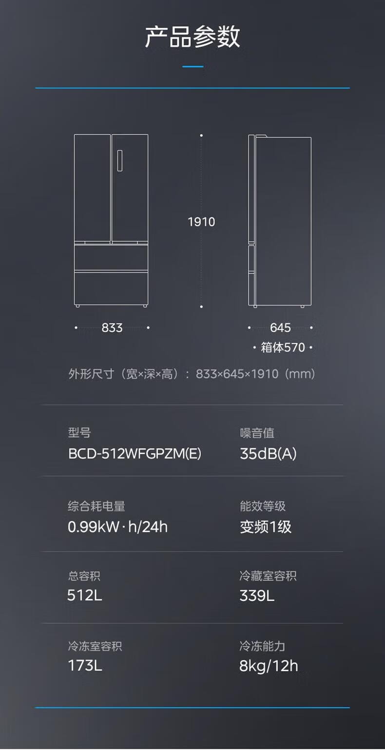 • 美的冰箱 BCD-512WFGPZM(E)霜影灰