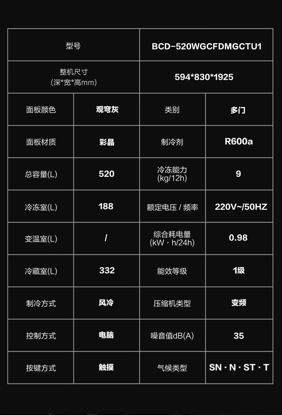 卡萨帝冰箱BCD-520WGCFDMGCTU1